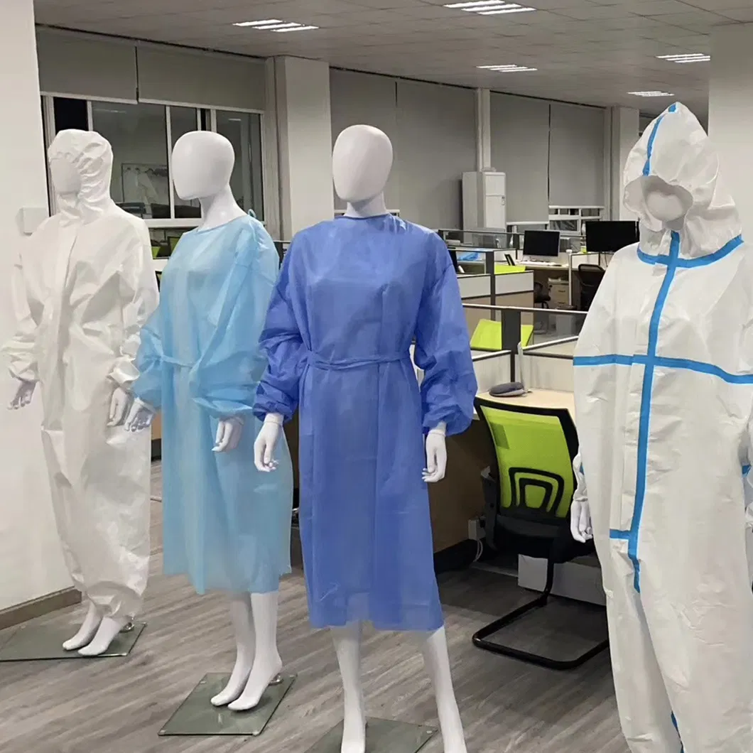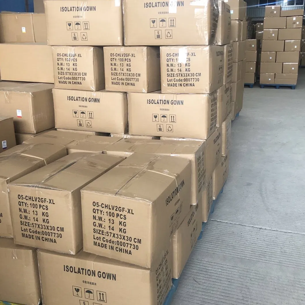 The gowns are made from a high-quality PP+PE material with a thickness of 30GSM, providing reliable protection.